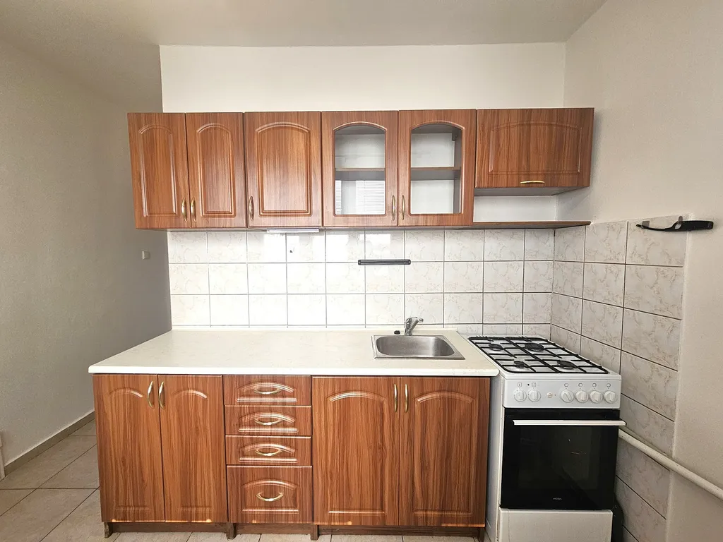 Kuchyň je vybavena kuchyňskou linkou s plynovým sporákem, elektrickou horkovzdušnou troubou a pračkou.