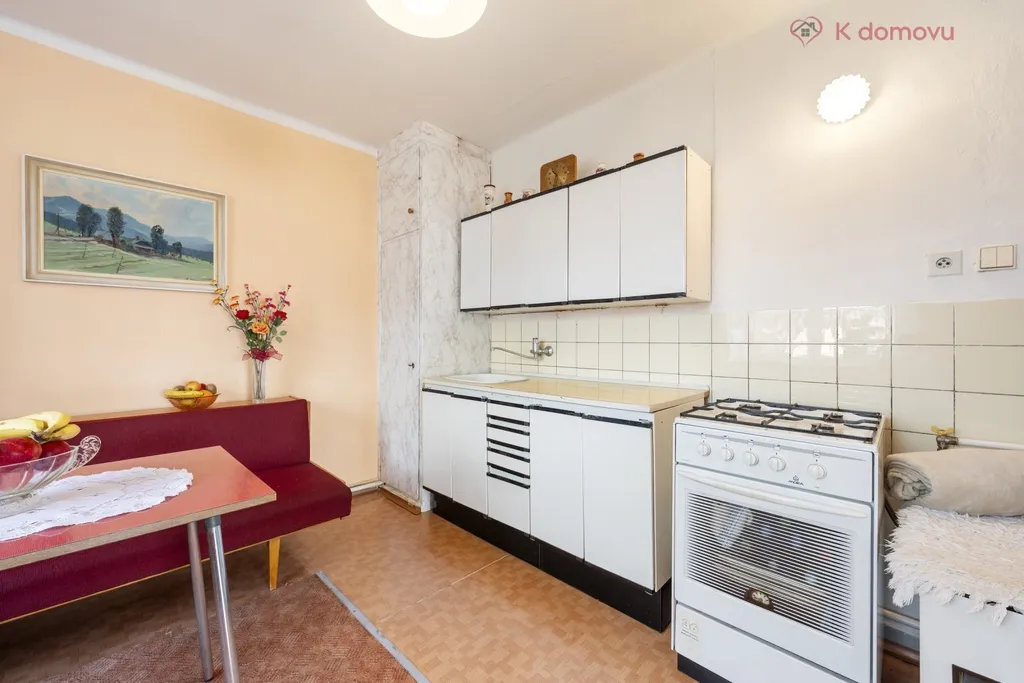 Nemovitost byla až doposud celoročně a plnohodnotně využívána, udržována v čistotě a pořádku. Dispozice bytu 2+1 o velikosti cca 49,35m2 disponuje vstupní chodbou, kuchyní s jídelnou, ložnicí a obývacím pokojem s francouzským oknem, které umožňuje větší prostor pro světlo z jihozápadní strany. Na chodbě je pak vestavěná skříň a koupelna s WC. Dva sklepy mají celkem 3,80m2. Pro svou dispozici je byt vhodný i jako investiční příležitost k pronájmu. V domě jsou veškeré IS a vytápění je řešeno plynovými tělesy Mora a v koupelně je bojler napojen na plynovou karmu.
