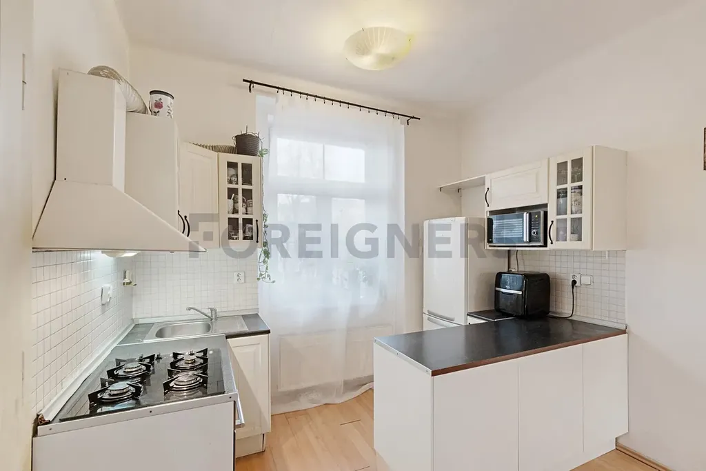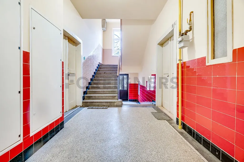 Dispozičně je byt řešen prakticky a efektivně. Obývací pokoj s kuchyňským koutem poskytuje dostatek prostoru pro každodenní život, zatímco samostatná ložnice zajišťuje klid a soukromí. Koupelna je vybavena vanou a pračkou, toaleta je oddělená, což výrazně zvyšuje komfort bydlení. Velkým benefitem je praktická spíž přímo v bytě, která nabízí dostatek úložného prostoru, a dále sklepní kóje v suterénu domu. Obyvatelé domu mohou navíc využívat společný dvorek a je možné si pronajmout parkovací místo ve dvoře.