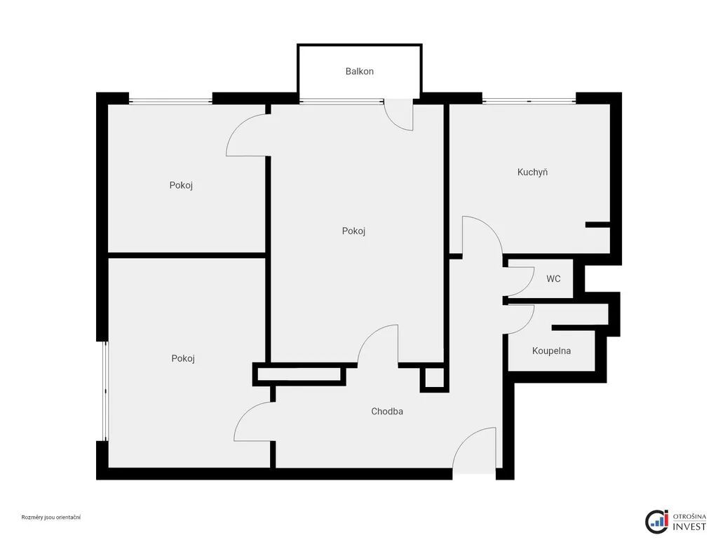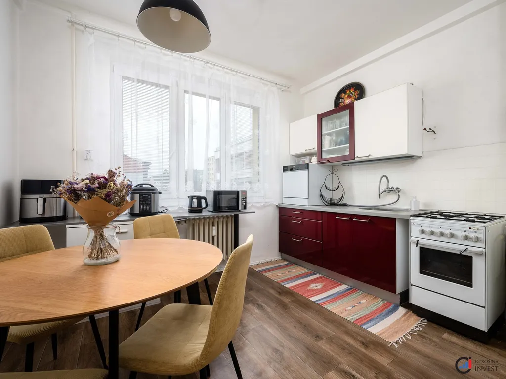 Dispozice bytu je velmi praktická a poskytuje dostatek prostoru pro rodinné bydlení i pohodlné soužití vícečlenné domácnosti. Sestává ze vstupní chodby, koupelny, samostatného WC, kuchyně, dvou samostatných pokojů a jednoho průchozího pokoje se vstupem na balkón. K bytu náleží dva sklepy, které zajistí dostatek úložného prostoru.