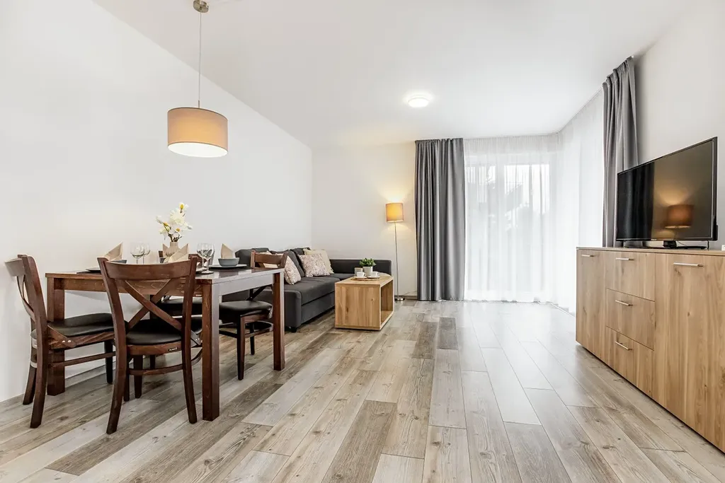 Tak pokud jste do teď nevybrali ten správný 2+kk apartmán v Lipně nad Vltavou, tak pro Vás konečně máme řešení bez kompromisů. V rezortu Korzo Lipno na Vás čeká kompletně vybavený apartmán 2+kk s krásným rohovým balkonem (16 m2) s jihozápadní orientací. Najdete ho v přízemí novostavby z r. 2020 a je připraven k okamžitému využívání. Díky umístění budovy ve svahu ale ani nepoznáte že jste v přízemí. Nabízí velmi prostornou předsíň stejně jako koupelnu s podlahovým vytápěním a sprchovým koutem. Obývací pokoj s kompletně vybavenou kuchyní a vstupem na již zmiňovaný rohový balkon a opravdu velkou ložnici s manželkou postelí a dalším lůžkem, takže se zde pohodlně ubytuje i velká rodina (3 děti) díky rozkládacímu gauči. Plastová okna, vinyl, tepelné čerpadlo + plynový kotel, prostorná sklepní koje (2,5 m2), bezproblémové parkování přímo před vchodem, recepce - to je jen pár detailů, které patří do standardu tohoto rezortu. Nízké měsíční náklady do 5.000,- Kč. Velmi dobrá poloha rezortu zaručuje dostatečný klid a současně velmi dobrou dostupnost jak k vodě (cca 300 m) tak i na sjezdovku (skibus 20 m od domu). A pokud byste nechtěli apartmán pořizovat pouze pro sebe, nabízí Korzo Lipno velmi zajímavý program správy nemovitosti, díky které si na sebe apartmán hezky vydělá a ještě zbyde dostatek času na ubytování pro Vás. Takže se doražte přesvědčit na vlastní oči.