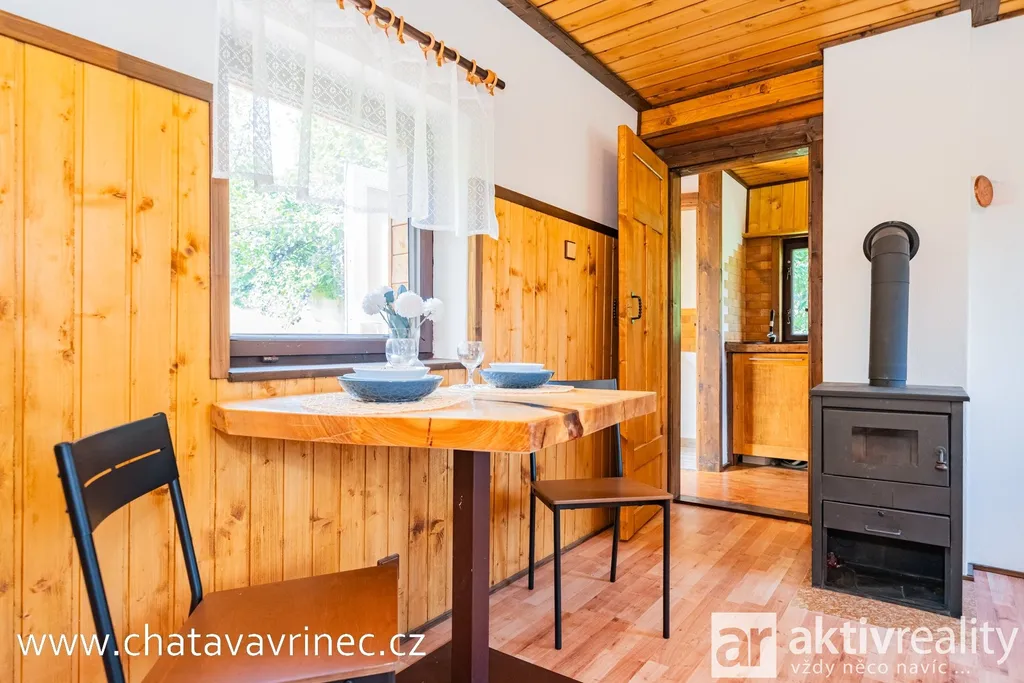 Chata prošla během posledních 3 let kompletní rekonstrukcí: nová střešní krytina, rozvody elektřiny, vody a kanalizace, podlahy, vnitřní schodiště a na míru zhotovené interiérové prvky od truhláře.