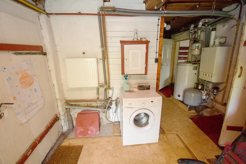 V přízemí velká společenská místnost 33m2 a dva pokoje, 11 a 13m2. V patře jsou pak tři obytné velké místnosti s dřevěnými stěnami. Dům je okamžitě obyvatelný. Napojený je na místní kanalizaci, vodovod a elektřinu. Vytápění moderním plynovým kondenzačním kotlem s dálkovým ovládáním.