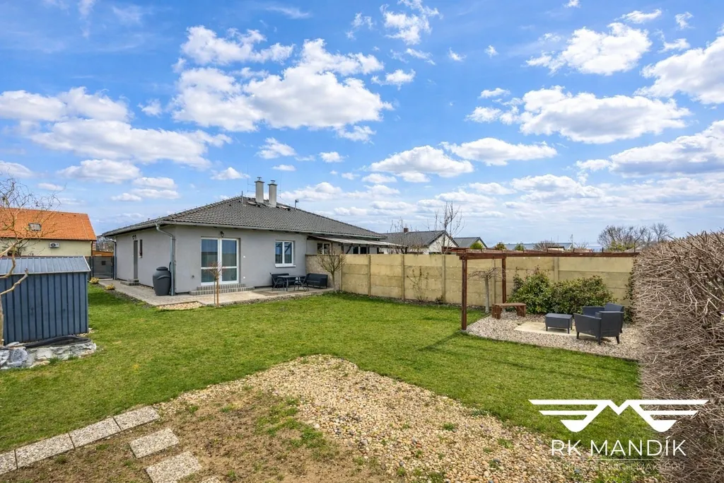 Zahrada poskytuje dostatek místa k odpočinku i zahradničení. K dispozici je terasa u domu, druhé posezení pod pergolou a prostor pro okrasnou i zeleninovou část. Na pozemku stojí praktický zahradní domek pro uskladnění nářadí. Součástí prodeje je také zásobník na dešťovou vodu a letních měsících oceníte dva vodovodní přívody určené k zalévání zahrady.