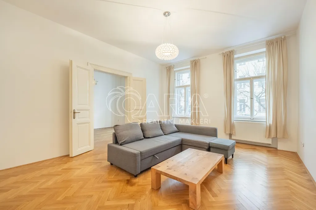 Nabízíme k pronájmu prostorný byt o dispozici 3+1 a celkové ploše 93 m², který se nachází v 1. patře činžovního domu s výtahem (výtah je v mezipatrech) v klidné ulici Lužická na Vinohradech.
