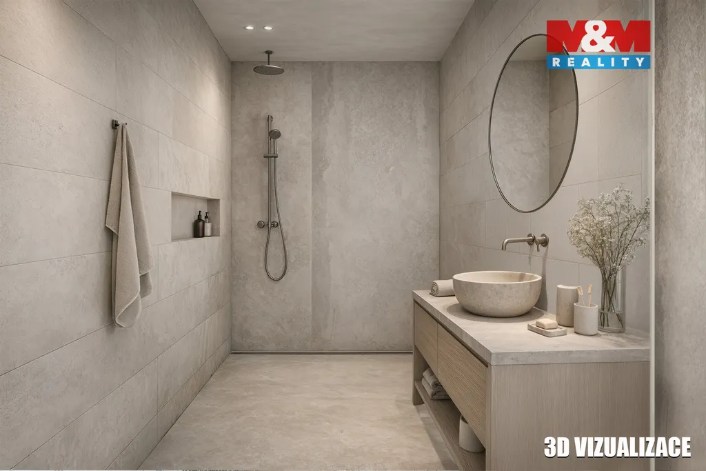 Dispozice nabízí dostatek prostoru pro rodinu, součástí je lodžie a sklepní kóje. Velkou výhodou je možnost vybavení zařizovacími předměty v koupelně a WC dle vkusu nového majitele. Taktéž kuchyňskou linku si vyberete dle vlastních představ. V inzerci jsou použité vizualizace stavu budoucího.