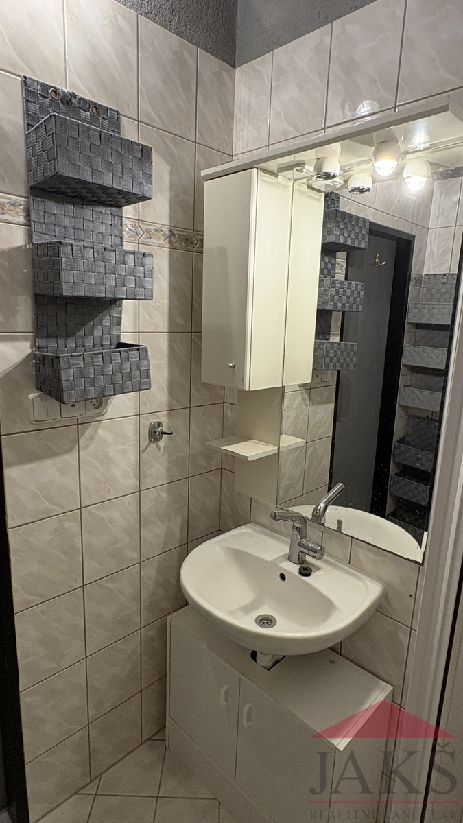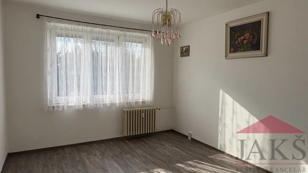 Popis: chodba, šatna s regály, zděná koupelna (sprchový kout, umyv. se zrcadlem a skříňkou, topný žebřík, pračka), samostatné WC, kuchyň (kuch. linka s plynovým sporákem s HV troubou, MV trouba, digestoř, myčka, spíží) s jídelnou (stůl se 4 židlemi), prostorný obývací pokoj (obývací stěna s TV, sedací souprava s konferenčním stolem).
