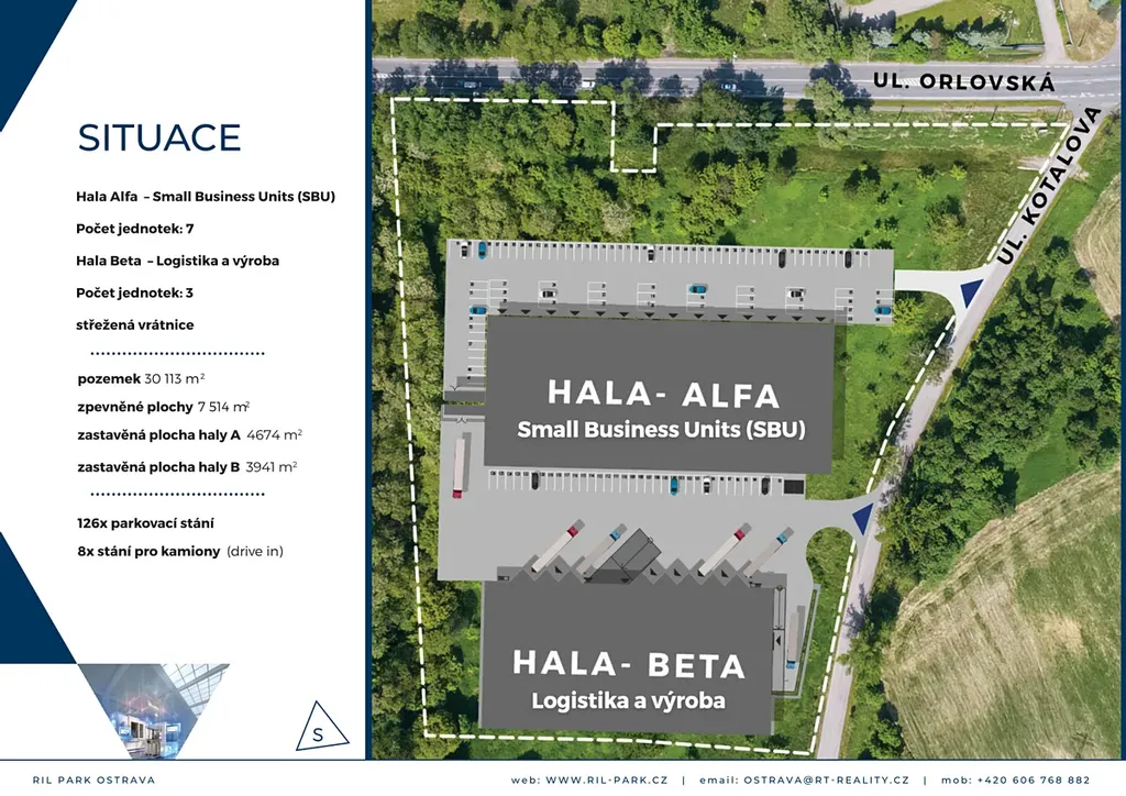 Nabízíme k prodeji pozemky o celkové výměře 30 113 m², na které je vydáno pravomocné stavební povolení pro výstavbu průmyslového areálu RIL Park Ostrava.