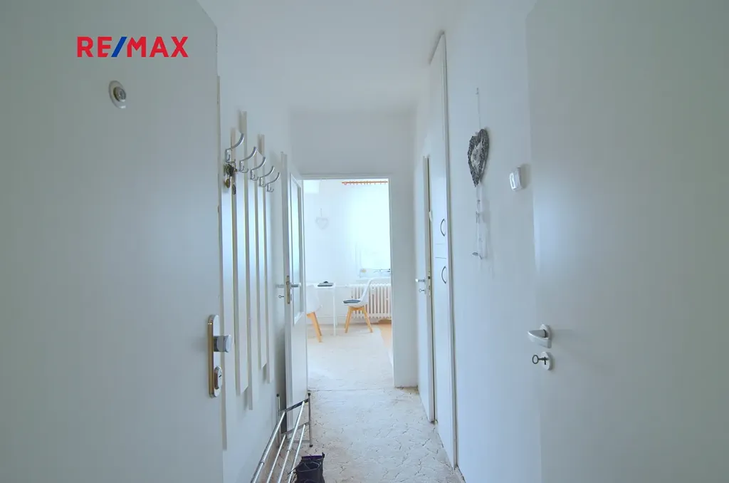V předsíni je další menší vestavěná skříň, botník a věšák na stěně.
