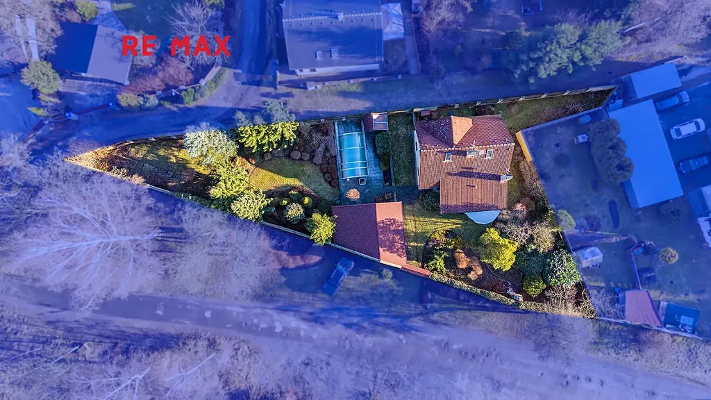 Dům je situován na pozemku o celkové výměře 900 m², který byl citlivě upraven podle návrhu zahradního architekta. Vznikla zde krásná okrasná zahrada s množstvím vzrostlé zeleně, keřů a okrasných stromů, která vytváří velmi příjemné soukromí a harmonickou atmosféru pro každodenní bydlení i odpočinek.