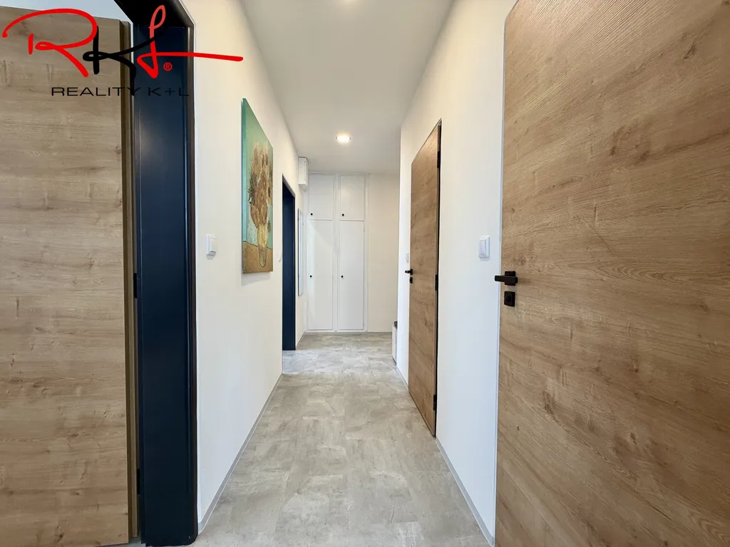 Něco málo o dispozici: Prostorná vstupní chodba s vestavěnými skříněmi a vstupem do všech místností.