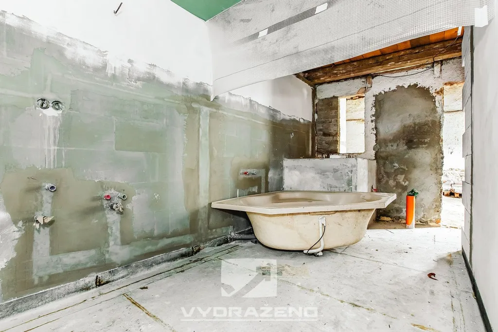 V domě jsou v přízemí do návsi plastová okna, zbytek dřevěná. V koupelně provedena základní instalace plastových trubek, elektřina rozvedena a propojena v krabičkách.