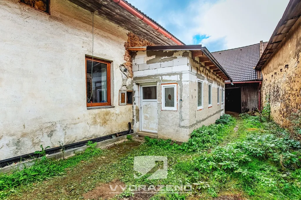 V přízemí je obývací pokoj s kuchyňským koutem, tři pokoje, chodba, koupelna s vanou a WC. Podkrovní prostor s možností rozšíření. Kolna a velká stodola.