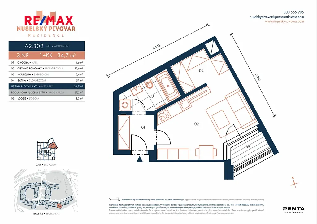K dlouhodobému pronájmu nabízíme zcela nový byt 1+kk o velikosti 34,7 m² s lodžií (3,3 m²), situovaný ve 3. patře moderní rezidence Nuselský pivovar s výtahem.