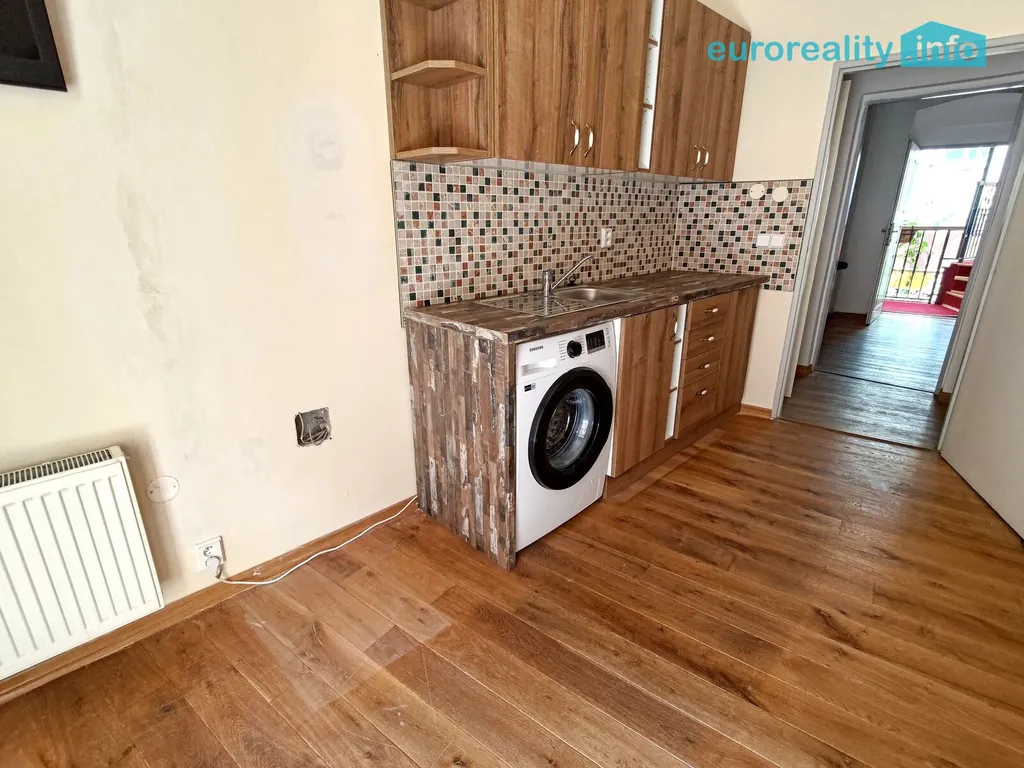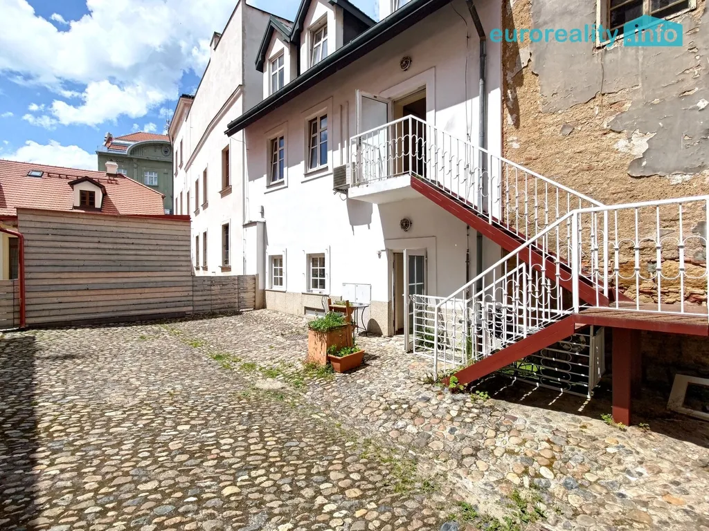 Pokoje jsou ve dvou úrovních. Ve spodní úrovni je jeden pokoj a kuchyně s výstupem do na balkon se schody do klidného vnitrobloku.