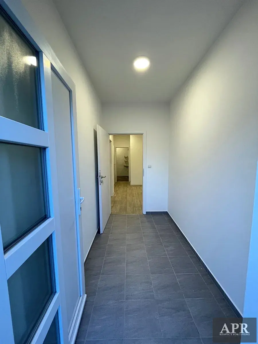 Nabízíme k dlouhodobému pronájmu novou, moderní, bytovou jednotku o velikosti 1+KK s příslušenstvím, parkovacím místem a sklepem. Byt je vytápěn el. podlahovým topením, prostřednictvím tepelného čerpadla. Dále v bytě rekuperace, nucené větrání. Okna jsou vybavena vnitřní stínící žaluzií. Byt je zařízenou kuchyňskou linkou včetně varné desky a trouby.