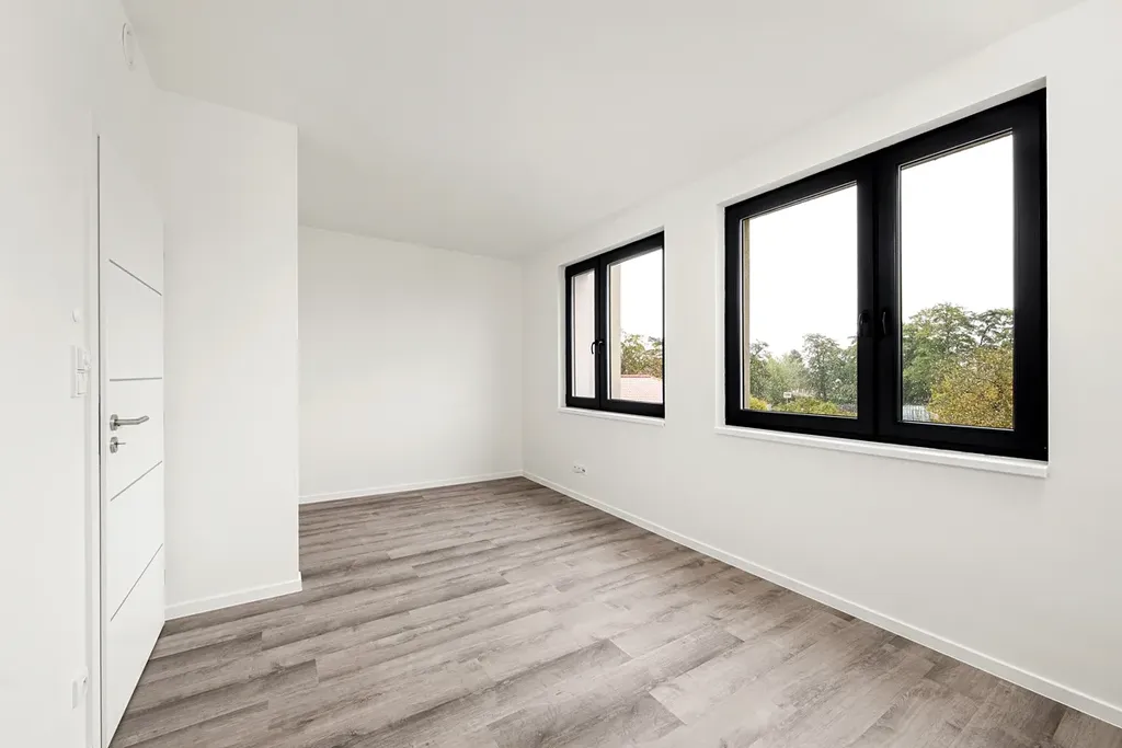 Byt je dokončený po kolaudaci, je provedena příprava pro kuchyňskou linku, hotové koupelny včetně sanity, dlažby, interiérové dveře, rekuperační jednotka, podlahové vytápění, plastová okna. V ceně bytu je vinylová podlaha, možnost vlastního výběru s případným doplatkem rozdílu ceny za m².