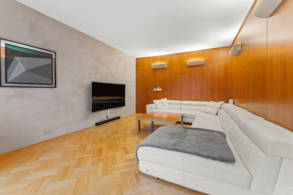 Luxusní atmosféru podtrhují kvalitní dřevěné podlahy, designové osvětlení a vestavěný audiosystém, díky kterému si můžete vytvořit dokonalou náladu pro každý okamžik.