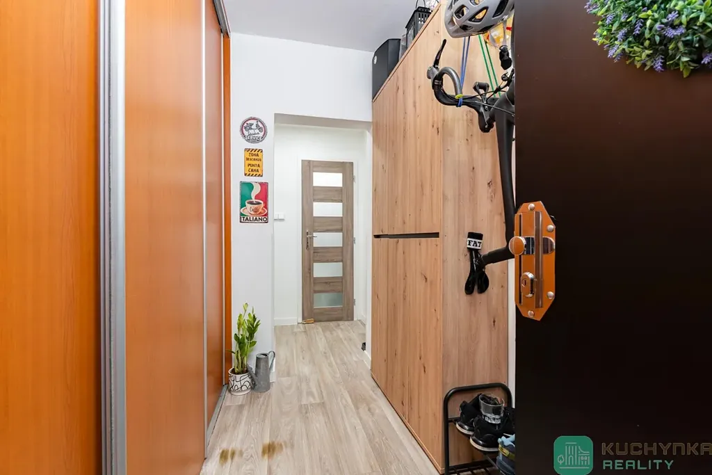 Byt prošel zdařilou rekonstrukcí. V kuchyni a koupelně elektřina v mědi, štukované stěny, zděné koupelnové jádro s moderním obkladem, sprchou, prostorem na pračku i sušičku a oddělenou toaletou. V bytě Vás zaujme nadstandardní rohová kuchyňská linka zn. Ikea vč. vestavných spotřebičů (lednice, indukce, trouba, myčka, mikrovlnná trouba, digestoř). Pochozí podlaha je z PVC, v ložnici plovoucí podlaha, v koupelně a toaletě keramická dlažba. V chodbě prostorná vestavná skříň. Součástí bytu je komora na patře a sklep v přízemí.