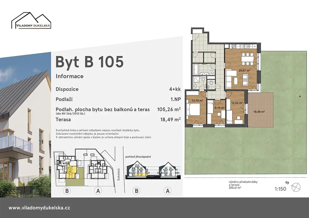 Vstupte do jedinečného nadstandardního bytu, který vás okouzlí svou promyšlenou dispozicí a soukromou velkorysou předzahrádkou. Kdo by nechtěl soukromou oázu zeleně, kde může relaxovat, pěstovat květiny nebo si jen užívat čerstvý vzduch. Každý kout tohoto bytu nabízí harmonii prostoru, světla a soukromí. Hlavní obytná část vás přivítá vzdušnou a útulnou atmosférou. Dispozice bytu je řešena tak, aby nabízela dostatek místa pro každého člena domácnosti. Obývací pokoj plynule navazuje na kuchyňský kout a společně tvoří dokonalé místo pro rodinná setkání i chvíle odpočinku. Dva dětské pokoje, dvě šatny v zádveří, velká koupelna s vanou i ložnice s vlastní koupelnou a vstupem na zahradu vám zajistí maximální komfort bydlení.