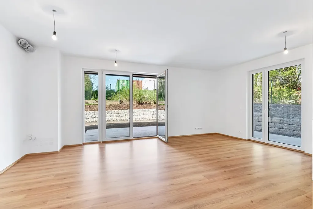 Díky francouzským oknům s izolačními trojskly je tento byt nádherně přirozeně prosvětlen a umožňuje vstup na zahradu ze všech místností. Byt je vybaven podlahovým vytápěním s termostatem v každé místnosti, což vám umožní efektivní regulaci teploty podle vašich potřeb. Kuchyňská linka není součástí vybavení, můžete si ji navrhnout přesně podle vlastních představ a stylu. K bytu náleží prostorná sklepní kóje umístěna v 1. podzemním podlaží.