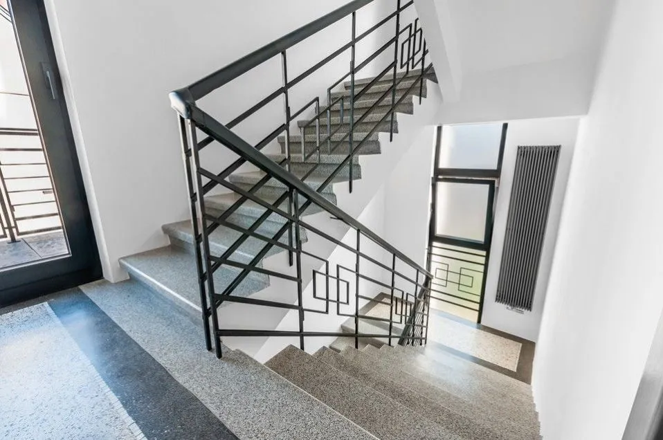 K zachovaným původním prvkům patří například schodišťová chodba s okny, původní repasovaná teraco v chodbách a na schodišti.