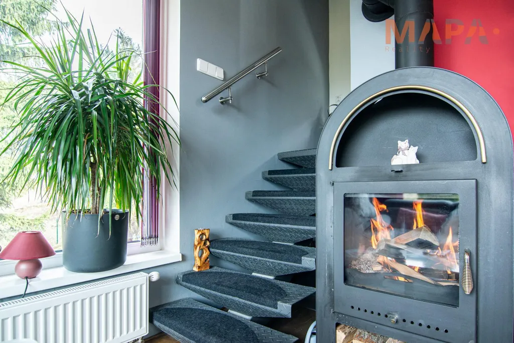 Krbová kamna s výměníkem, napojení na ústřední topení, příjemná atmosféra i praktická funkce