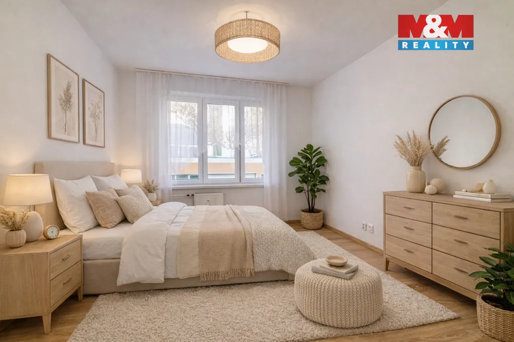 Dispozici tvoří prostorný obývací pokoj se vstupem na balkon, samostatná ložnice, kuchyně, koupelna s WC a praktická chodba.
