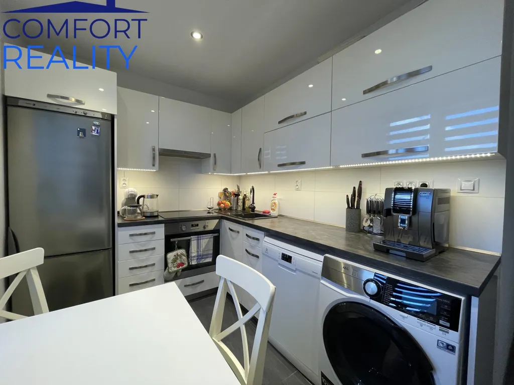Dobrý den, dovoluji si Vám exkluzivně zprostředkovat dlouhodobý podnájem prostorného bytu s dispozicí 2 + 1 s balkonem o výměře 58,45 m2, nacházející se v 2.patře bytového domu s výtahem v Ostravě Porubě na ul.Mongolská. Originálně řešený byt po celkové modernizaci s balkonem do klidové zóny. Byt je tvořen prostorným obývacím pokojem, který je prakticky rozdělen nízkou příčkou na dvě části, dále kuchyní, další samostatnou místností, předsíní, koupelnou, samostatným WC. Atraktivní interiér, ve výborném stavu, po nákladné a promyšlené modernizaci. Byt je vybaven kuchyňskou linkou s vestavěnými spotřebiči (pračka není součástí) a šatní skříní v předsíni. Okna bytu jsou orientována na dvě strany (JZ a SV). Atraktivní nabídka dlouhodobého bydlení u výborného majitele. Rezervujte si možnou prohlídku.