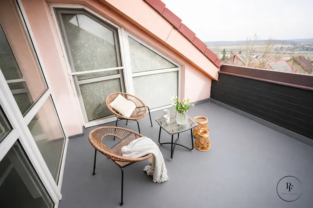 Jednou z hlavních předností této nemovitosti je terasa s krásným výhledem do okolní krajiny, která dává bydlení příjemný přesah a vytváří ideální prostor pro odpočinek. Byt působí vzdušně, příjemně a celkově velmi dobře udržovaným dojmem.