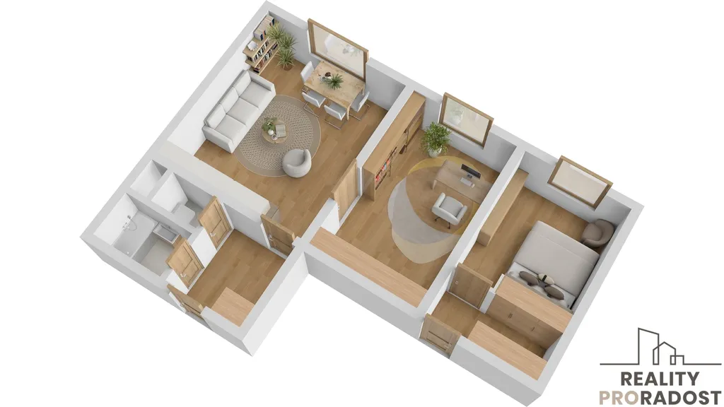 - Dispozice bytu se dá změnit na 3+KK nebo můžete mít 2 oddělené byty