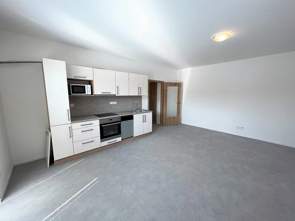 Za vstupními dveřmi se ocitneme ve velmi prostorné chodbě o velikosti cca 5,60 m², ze které se vchází do všech samostatných místností v bytě. Toaleta je zde samostatná o výměře cca 1,85 m², která disponuje WC a umyvadlem. V koupelně o výměře cca 4,65 m² je sprchový kout, umyvadlo se skříňkou, vývod na pračku a elektrický boiler zajišťující ohřev vody. Ložnice o výměře 12,50 m² je nevybavená. Hlavní místností v bytě je obývací pokoj s kuchyní o celkové ploše cca 24,52 m². Kuchyňský kout je velmi vkusně zařízený nejen pěknou kuchyňskou linkou, ale samozřejmostí jsou i spotřebiče, myčka, digestoř, trouba, sklokeramická deska. Dominantou této místnosti je úžasná prostorná terasa o celkové ploše cca 11 m².