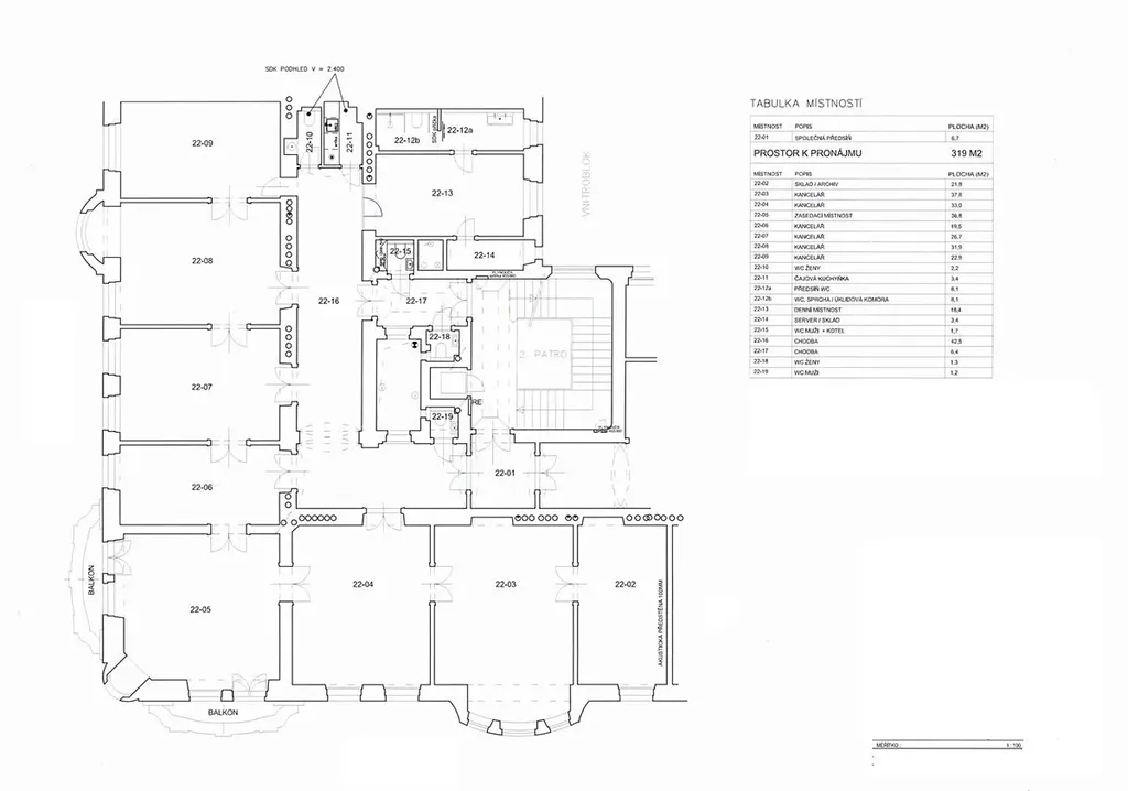 Reprezentativní kancelářské prostory 9+kk, o celkové rozloze 319 m2, se dvěma malými balkony, jsou situované ve 2. patře zrekonstruovaného secesního domu s výtahem v samotném centru města v ulici Na Perštýně, Praha 1 Staré město.