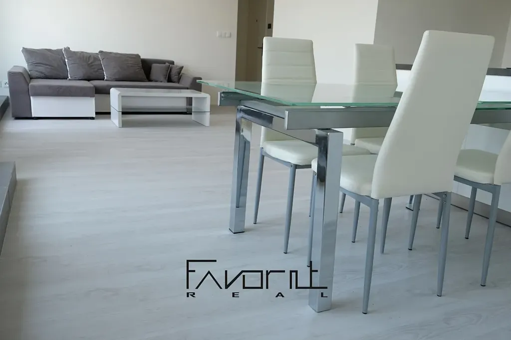 V bytě je vše nové a nepoužité (podlahy, sanita, kuchyňská linka na míru včetně el. trouby, el. varné desky, myčky a digestoře).