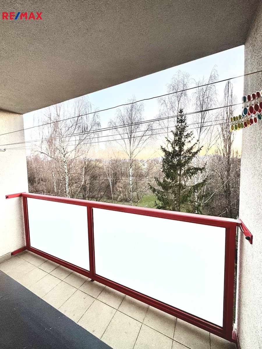 Lodžie je po opravě a ve velmi dobrém stavu. Z bytu je otevřený výhled do zeleně, na sportovní plochy a je orientován k vodní nádrži Olešná s panoramatem Beskyd v pozadí. Tento typ výhledu je jedním z hlavních benefitů nabídky.