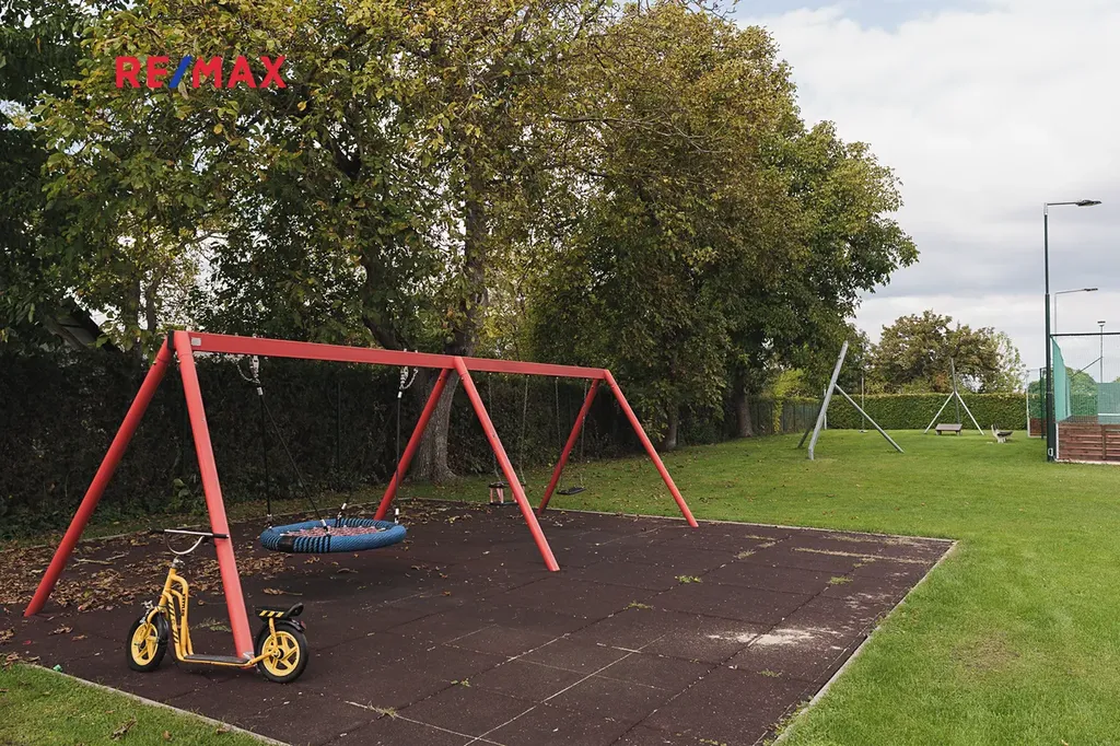 Jak vidíte na fotografiích, dům sousedí s volně přístupným hřištěm a nedaleko je i hospoda. Takže pro děti i manžela to budete mít jen pár kroků. Relaxovat se dá ale i u jezírka, které se nachází na západním okraji obce.