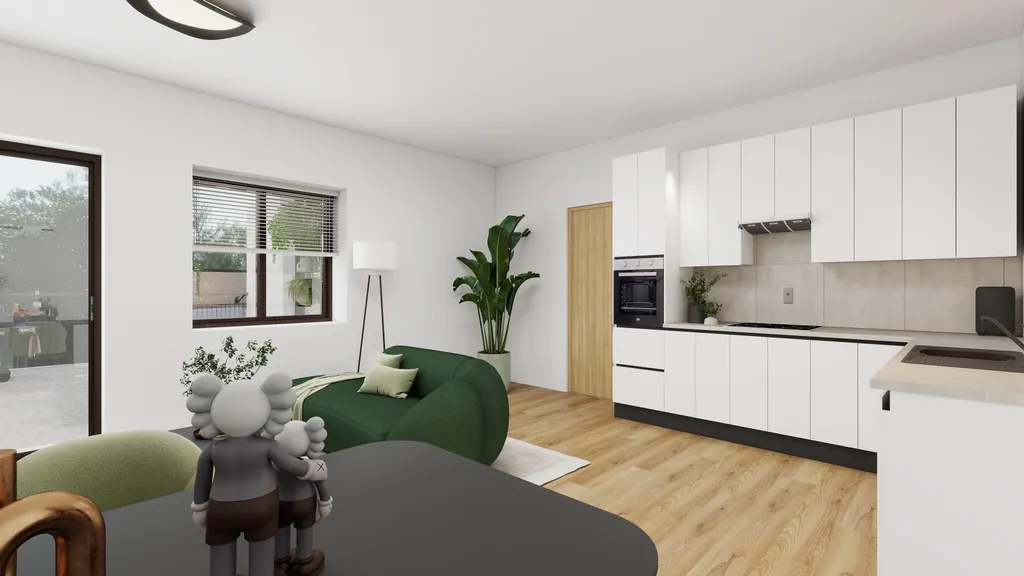 Projekt půjde do výstavby v roce 2026 a bude dokončen a zkolaudován na konci 1. pololetí 2027. V domě budou vybudovány ještě jednotky o dispozici 2+kk (54 m2) a 4+kk (117 m2) (rovněž naleznete v inzerci).