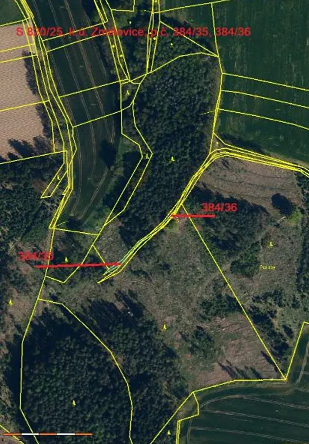 Jedná se o prodej 2 lesních pozemků parc. č. 384/35 o výměře 122 m2 a parc. č. 384/36 o výměře 36 m2, nacházejících se jižně od obce Zmišovice, obklopených privátními lesy. Jde o bezlesí tvořící součást cesty, zarostlé trávou a buření.