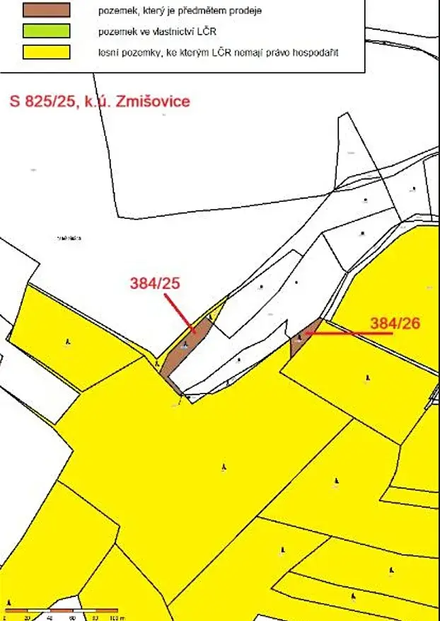 Jedná se o prodej 2 lesních pozemků parc. č. 384/25 o výměře 847 m2 a parc. č. 384/26 o výměře 334 m2, Nacházejících se jižně od obce Zmišovice, na okraji privátních lesů. Pozemek parc. č. 384/25 je veden jako bezlesí, ale nachází se na něm smíšený lesní porost. Pozemek parc. č. 384/26 je bezlesí.