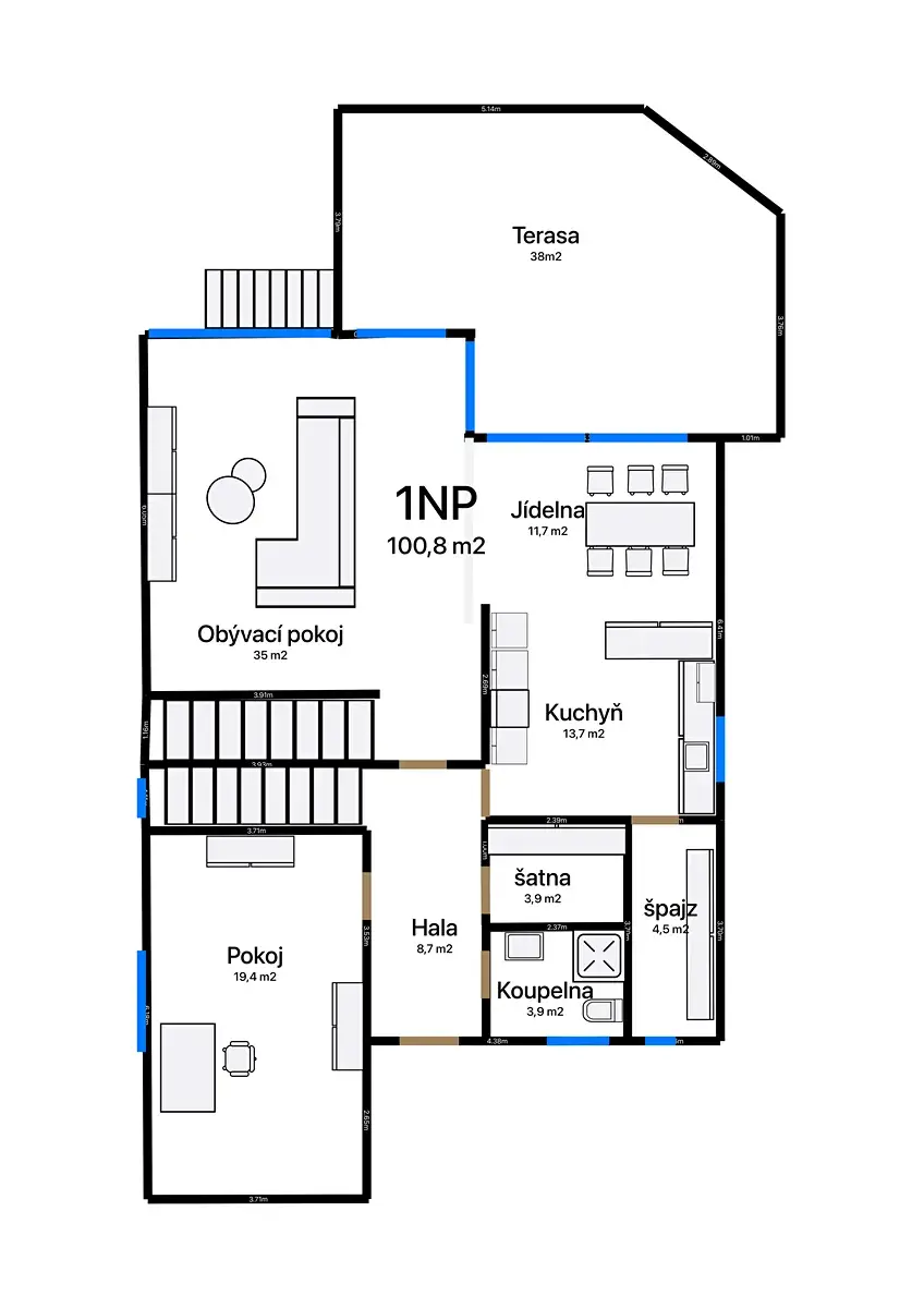 Dům je volný a doporučuji jeho prohlídku.
