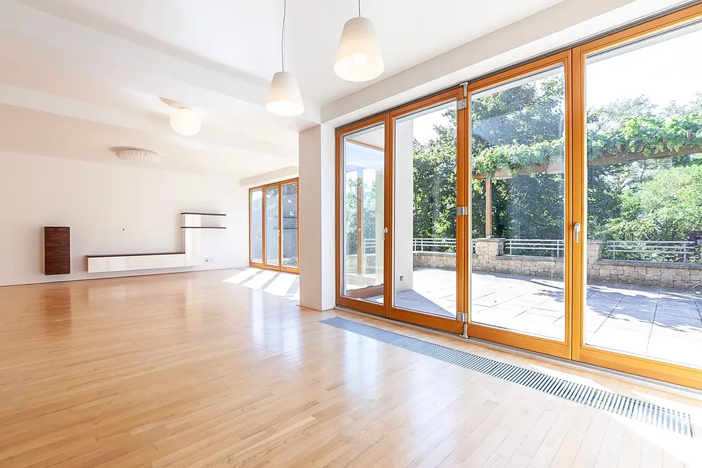 Pokud hledáte ideální prostředí pro spokojené rodinné bydlení nedaleko Prahy a zároveň být kousek od přírody, dovoluji si Vám nabídnout rodinný dům v obci Úholičky ul. Nade Dvorem. Jedná se o klidnou rezidenční oblast zaručující dostatečné soukromí. Dům stojí na konci slepé ulice. Dům se skládá ze tří podlaží o celkové užitné ploše 342m2 ( včetně 102,3m2 užitné plochy podzemního podlaží a 47,5m2 teras). V 1.PP se nachází garáž pro dvě auta, technické zázemí s prádelnou a velký úložný sklepní prostor. Dominantou 1.NP a celého domu je prostorný obývací pokoj propojený s jídelním a kuchyňským koutem. Toto prostředí zpříjemňuje dostatek světla díky jižní orientaci oken s výhledem do zeleně a vstupem na terasu (38m2). Terasa zaručuje dostatek prostoru na posezení, grilování a odpočinek. Díky skvělé orientaci se stane srdcem Vašeho domova. V patře se dále nachází vstupní hala, šatna, spíž u kuchyně, samostatný pokoj, koupelna se sprchovým koutem a WC. V patře pak nalezneme čtyři identické samostatné pokoje a společnou velkou koupelnu s WC. Ložnice rodičů má vlastní koupelnu se sprchovým koutem a WC. Kromě jednoho pokoje je součástí místností i vlastní šatna a jeden pokoj má vlastní terasu (9,5m2).