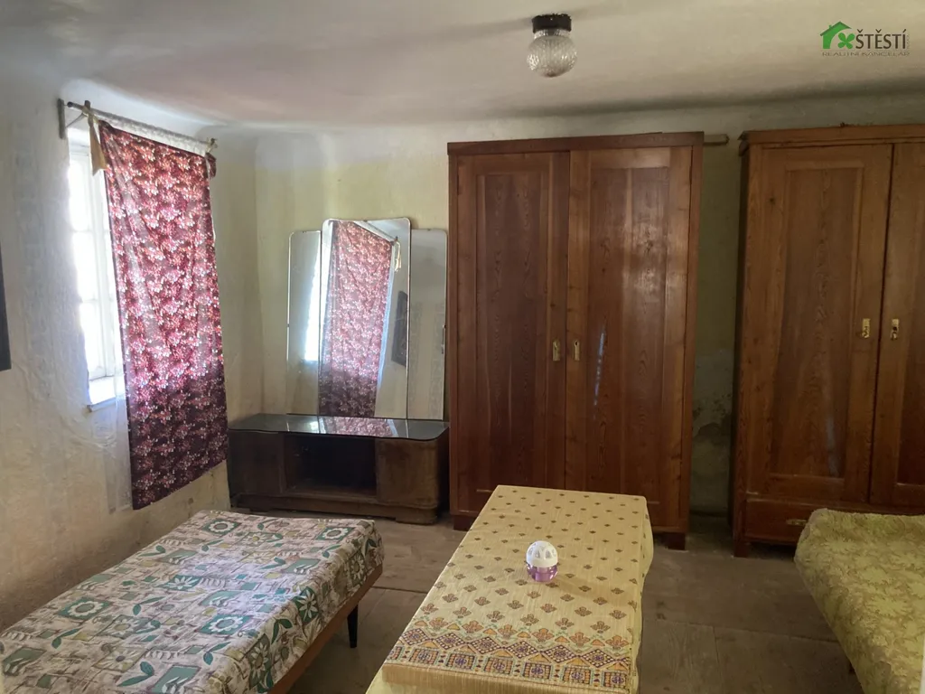 Zdivo je smíšené, střecha sedlová se střešní krytinou BOBROVKA. V domě se nachází veřejný vodovod, el. v hliníku, přípojka plynu je před domem - stačí jen připojit do domu. Jinak vlastní septik a suché WC. K domu patří ještě samostatný pozemek vedený jako zahrada o rozměrech 410m2.