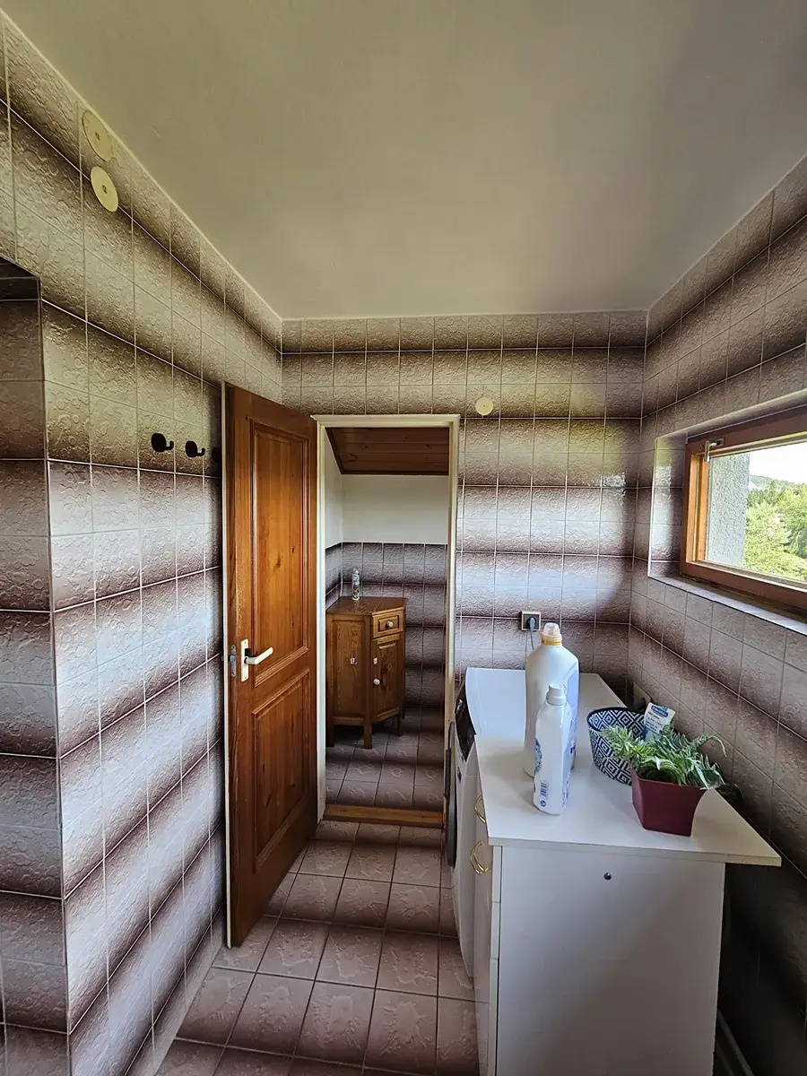 Dolní bytová jednotka 4+1 s obytnou plochou 98 m2 zůstala v původním udržovaném stavu a je určena k rekonstrukci.