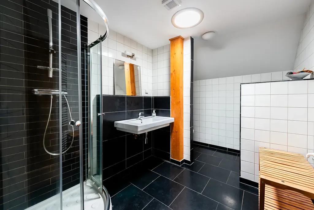 Nabízíme k prodeji celé horní patro domu v centru Kvildy, které tvoří mezonetový apartmán 3+kk a samostatný apartmán 2+kk o celkové ploše 154,76 m². Nemovitost nabízí ideální kombinaci vlastního horského bydlení a okamžitého potenciálu krátkodobého pronájmu v jedné z nejnavštěvovanějších lokalit Šumavy.
