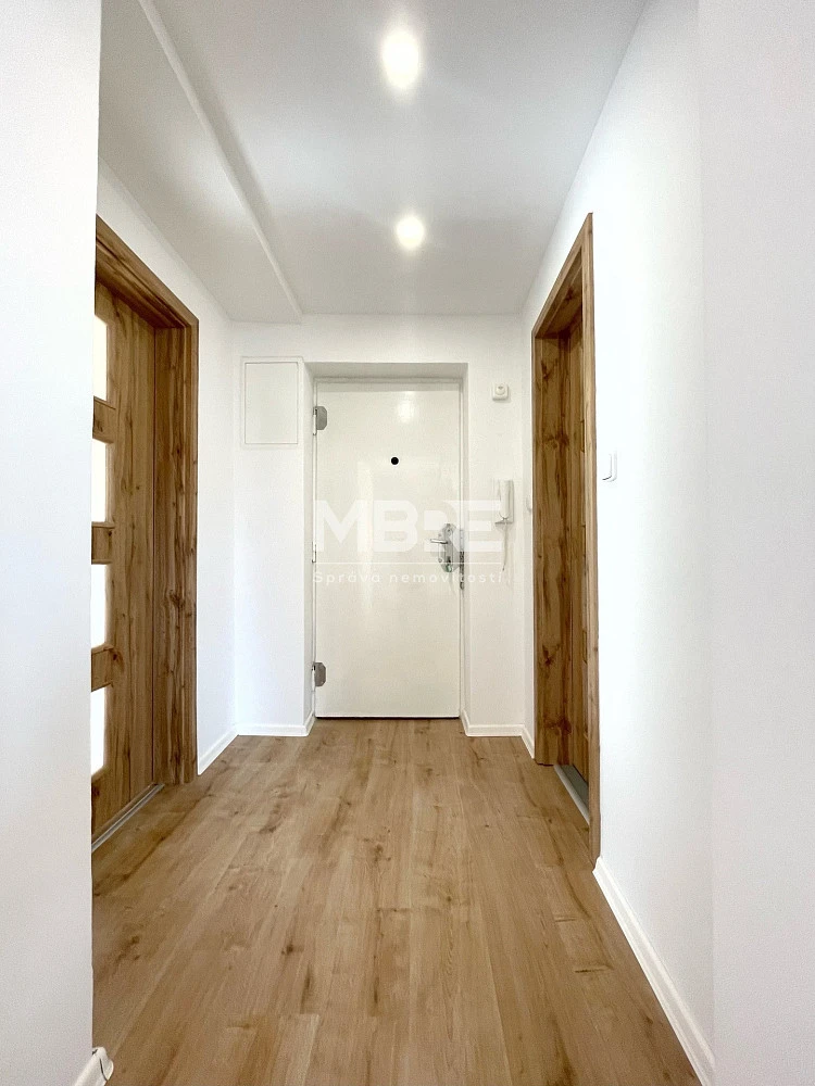 Bytová jednotka disponuje prostornou vstupní chodbou s dostatkem úložného prostoru, obývacím pokojem s velkým francouzským oknem, neprůchozí ložnicí, prostornou kuchyní s dostatkem místa pro jídelní stůl a také moderní koupelnou s vanou a WC.