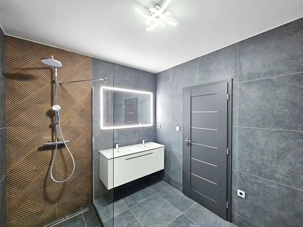Ve druhém nadzemním podlaží se nachází tři ložnice o výměrách 10,3 m2, 13,5 m2 a 15,5 m2 a prostorná koupelna v moderním stylu se sprchovým koutem i vanou. Podkroví disponuje dostatkem prostoru pro uložení všech sezonních věcí.