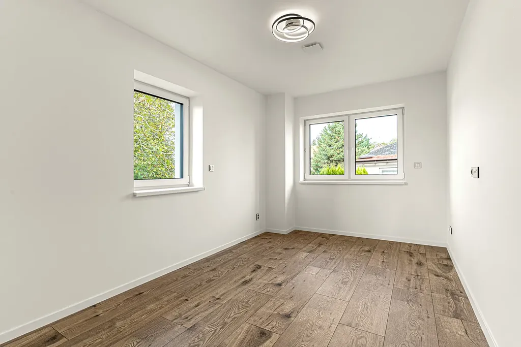 Novostavba nízkoenergetického dvojdomu v energetické třídě A vznikla v původní zástavbě městské části Praha – Řepy v blízkosti lesoparku i veškeré občanské vybavenosti. Každá jednotka disponuje prostorným obývacím pokojem přes 40 m2, toaletou, technickou místností a vstupní halou s dostatkem úložných prostor v přízemí, v prvním patře se nachází tři ložnice, z nichž jedna má vlastní koupelnu se sprchovým koutem, jedna společná koupelna s vanou a prostorná šatna. Ke každé jednotce náleží zahrada 80 m2 a dvě parkovací stání na pozemku před domem s dobíjecí stanicí.