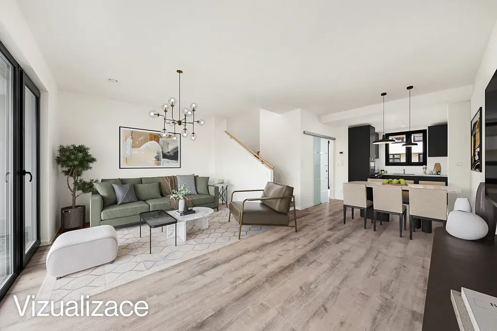 Nabízíme k prodeji nový řadový rodinný dům, vedený jako družstevní mezonetový byt o dispozici 4+kk o velikosti 100 m² + předzahrádka o výměře cca 30 m², který je situovaný v 1. NP a 2.NP cihlové novostavby družstevního bydlení v Rezidenci U Školy, Odolena Voda.