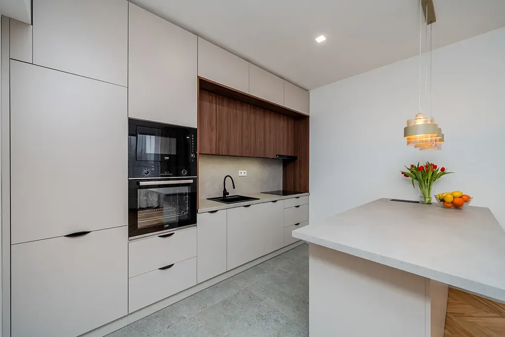 Z původního 2+1, došlo změnou dispozice a nákladnou rekonstrukcí ke změně na 2+kk. Dominantou bytu je prostorný obývací pokoj propojený s moderní nadstandardní kuchyní s ostrůvkem. Kuchyňská linka se zabudovanými spotřebiči je zhotovena na míru. Součástí je zabudovaná lednice s mrazákem, myčka, indukční varná deska, digestoř, mikrovlná trouba. Kuchyně ve velmi prostorná s dostatkem úložných prostor. Je zde prostorný ostrůvek s pracovní deskou. V části bytu se podařilo zachovat původní parkety, které prošly renovací. Zbývající část podlah je pokrytá dlažbou (chodba, část kuchyně, koupelna a wc), v ložnici je pak plovoucí podlaha s dekorem parket. Byt má nové rozvody, vstupní i interiérové dveře. Koupelna je zděná, s novými velkoformátovými obklady, sprchovým koutem, umyvadlem, koupelnovým nábytkem i žebříkovým topným tělesem. Toaleta s obklady a novou sanitou je samostatná. V chodbě se nachází vestavěná skříň s prostorem a připojením pro pračku. Ložnice je směřovaná do vnitrobloku, takže se není třeba bát ruchu ulice. Výhodou je možnost parkování v právě zmiňovaném vnitrobloku. Vchod do domu je z obou stran. Rekonstrukce byla dokončena v lednu 2026, takže je byt připravený k okamžitému nastěhování. Díky nízkým nákladům na bydlení je vhodný jak pro bydlení tak i jako investice. Fond oprav je ve výši 1.220,-Kč a náklady celkem včetně fondu 3.270-Kč. Veškerá občanská vybavenost je v dosahu. K bytu patří sklepní kóje. Parkování je možné také v ulici před domem. Byt lze financovat hypotečním úvěrem. Pro více informací mne prosím kontaktujte.