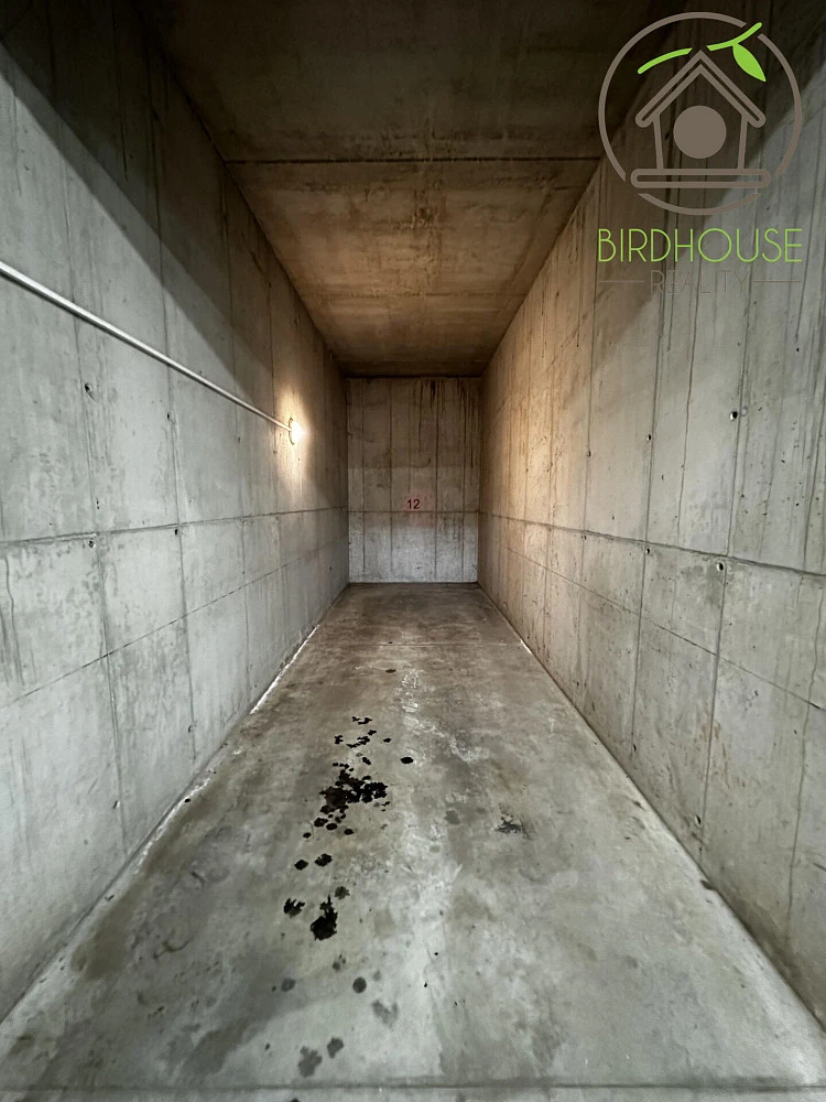 Tím však výčet výhod nekončí. K bytu náleží nejen kryté garážové stání (18,46 m²) v suterénu domu, ale také prostorný sklep (3,02 m²), kam bezpečně uložíte vše od kol na auto až po lyže. Nemusíte si dělat starosti ani s uložením jízdních kol. V suterénu domu je k dispozici také kolárna.